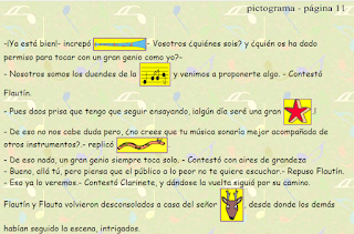 - Intentad leer el cuento con los pictogramas, a ver si adivináis lo que representan y conocéis todos los instrumentos musicales que aparecen en él. ¡Mucha suerte!